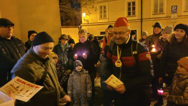 Ve středu dne 17. prosince léta Páně 2025 odehrála se na Haštalském náměstí událost, jež klid poklidného zimního podvečera zcela rozervala. Slavnost zvaná Večer světel, svolaná ku připomenutí díla spisovatele Jaroslava Foglara a navštívená více než sedmi desítkami osob, mezi nimiž nechyběly ani děti a mládež nedospělá, nabyla nečekaně rázu téměř bojového.