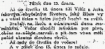 Jaké bylo první vydání Hochů od Bobří řeky[ Autor: Milan Lebeda - Alpín | zařazeno: 4. 3. 2004 | přečteno 17081 ] První vydání Hochů od Bobří řeky – na pokračování v dětské nedělní příloze Slovíčko v deníku České Slovo – začalo vycházet v neděli 4. března 1934 v 9. čísle Slovíčka a ukončeno bylo v čísle 41 v neděli 14. října téhož roku; dohromady tedy bylo 33 pokračování.Celý příběh byl doprovázen drobnými ilustracemi Jaroslava Foglara, který tyto kresby vytvořil pouze jako předlohu pro malíře, avšak vydavatelství je využilo pro samotné otiskování. První vydání se v detailech liší od těch dalších v pořadí, nejvýrazněji a nejrozsáhleji najdeme odlišnosti hned na samotném začátku děje kdy je v prvních kapitolách poměrně zdlouhavě líčen zápas Jirky s Novočtvrťákem. Tento domluvený zápas se odehrává jako náhrada za policistou přerušenou pranici vzniklou kvůli vyraženému míči. V dalších vydáních tedy zůstala jen úvodní pranice a poté na scénu hned přichází Rikitan. V úvodních zápasnických kapitolách se objevuje několik v dalších letech již neuváděných jmen, například jednonohý Rudla Kastnerů z „přístavního okolí“, „který přinesl před dvěma roky do Staré čtvrti podivuhodnou zápasnickou ránu s děsným účinkem a tehdy hochy z celé čtvrti ji naučil“. Právě touto „pirátskou ránou“ Jirka v prvním vydání zvítězil nad Novočtvrťákem. Všimněme si, že Kastner je z „přístavního okolí“, které jednak v dalších vydáních není již uvedeno, jednak tuto městskou část Foglar rád zmiňuje ve svých jiných románech (např. Přístav volá, 1934). Je-li řeč o částech města, tak v tomto vydání je na rozdíl od dalších jmenována vedle Staré a Nové čtvrti ještě Třetí čtvrť. Ačkoliv jsme o tom na Bohouškovi již několikrát hovořili, nezapomeneme ani zde připomenout, že na rozdíl od dalších vydání, kdy příběh začíná v pátek dne 13. března, ve vydání ve Slovíčku se odehrávat začne v pátek dne 13. února. Legendární píseň úplňku se v jedné kapitole nazvané „Rikitan zpívá po prvé Píseň Měsíce“ střídavě nazývá „Píseň Měsíce“ i „Píseň Úplňku“. Hned v tomto prvním vydání čtenáři můžou společně s Hochy od Bobří řeky lovit postupně 13 bobříků. První dva bobříky najdeme v pokračování z 3. června – příznivci kulatých výročí a 13 bobříků si tedy můžou do kalendáře poznačit další význačné foglarovské připomenutí. Všechny zkoušky mají již podrobně vypsané podmínky – tak, jak to známe z dalších vydání či ze Zápisníků 13 bobříků a každý bobřík má v textu Jestřábovo známé kreslené vyplňovací okénko „xxxého bobříka yyy jsem ulovil dne …“. Čtyři bobříky mají ještě poněkud jiné názvy: 3. bobřík záchrany se jmenuje užitečnosti, 4. plavec je bobřík plování, 8. bobřík velkého mlčení je uveden jako bobřík sebeovládání a 9. bobřík osamění má název trpělivosti. Román je ukončen v posledním pokračování odchodem Hochů od Bobří řeky na konci tábora ze Sluneční zátoky. Další kapitoly, ač je měl v tu dobu Jestřáb hotové (rukopis odevzdával dopředu jako kompletní text - nepsal tedy, na rozdíl třeba od pozdější Záhady hlavolamu na pokračování z týdne na týden) nebyly otištěny. Takové bylo redaktorské rozhodnutí – rozloučit se na konci prázdninového táboření. Závěrem připomeňme, že rukopis Hochů od Bobří řeky Jaroslav Foglar zaslal v roce 1933 do soutěže nakladatelství Melantrich, cenu sice žádnou nevyhrál, avšak román byl navržen a doporučen k otištění právě v melantrišském Slovíčku. Příště si řekneme o tom, jak se Jaroslav Foglar dopracoval k napsání svého nejvydávanějšího a nejznámějšího románu a co také je uloženo v základech tohoto příběhu, příběhu Hochů od Bobří řeky. Ukázka prvního novinového pokračování Hochů od Bobří řeky: Zvětšit obrázek ![]() Zvětšit obrázek ![]()