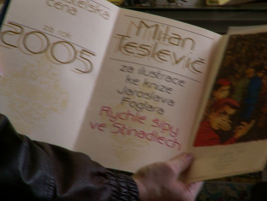 Ve 14 hodin na stánku Olympie převzali nakladatelské ceny za rok 2005 člen SPJF Milan Teslevič za ilustrace a Oldřich Pošmurný za grafickou úpravu nového vydání stínadelské trilogie s názvem Rychlé šípy ve Stínadlech.