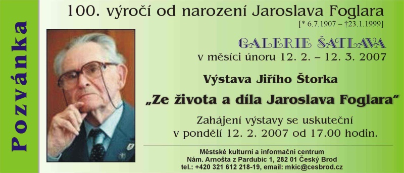 V Galerii Šatlava v Českém Brodě byla 12.2.2007 zahájena výstava Jiřího Štorka ke 100. výročí narozenin Jaroslava Foglara. Výstava je přístupná do 12. března 2007. (Kliknutím se zvětší pozvánka na vernisáž).