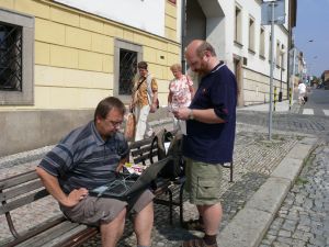 Po prohlídce muzea jsme neodolali a zašli do vedlejší restaurace na oběd. To již se nad jílovským náměstím začalo smrákat a hřmít, jako by se zlobil Jan Rotlev (zdejší středověký mincmistr). Tak jsme se zde moc nezdrželi, nastoupili do autobusu a za bouřky s přívalovým deštěm dojeli do Prahy.