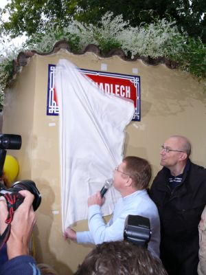 Za přítomnnosti téměř půl tisícovky účastníků (z toho z většiny děti) byla dnes téměř v 18,13 hod. starostou městské části Praha 1 Petrem Hejmou slavnostně odhalena oficiální pouliční cedule se jménem ulice "VE STÍNADLECH". Kromě Slávka Janova (moderátora celé akce) v krátkých proslovech vedle starosty hovořil také radní Filip Dvořák. Připomněl nejen fakt, že staropražské uličky jsou spojeny s generacemi dětských čtenářů foglarovek, ale také že velké zásluhy na pojmenování ulice propojující Haštalské náměstí s ulicí U Obecního dvora má také Milan Lebeda - Alpín (místopředseda SPJF). Již od 14 hodin však na hřišti na Františku probíhalo množství doprovodných soutěží a akcí. Po odhalení cedule slavnostní happening pokračoval v Obecním dvoře, kde organizátoři z MČ Praha 1, agentury Brumlovka a Pražské pobočky SPJF připravili bohatý program včetně občerstvení. Již při vstupu všichni obdrželi plakátek, žlutý špendlík, staropražské CD s hity Jaroslava Ježka a lístek pro plnění bobříků. Na jednom pódiu uvnitř dvora se střídaly Paběrky Marko Čermáka a skupina Apalusa (ta hrála i coververze foglarovských písniček!), na druhém pódiu hráli ve dvou vstupech hoši Rychlých šípů z divadla v Příbrami. Ti zaujali zejména dětské diváky, kteří pohotově reagovali na šípácké repliky. Uvnitř stínadelského domu, který připomíná svým vzezřením Kocouří hrádek, probíhalo lovení bobříka odvahy (dětští účastníci obdrželi po jeho absolvování speciální šípácké tričko), mohli navštívit klubovnu Rychlých šípů, místnost s videoprojekcí foglarovských dokumentů, hlasovat pro Miss foglarovek nebo si prohlédnout část výstavy, která sem byla přesunuta z Muzea hl. m. Prahy (a doplněna o další materiály, které na výstavě v muzeu prezentovány nebyly!!!) nebo zakoupit řadu materiálů a pohlednic včetně speciální turistické známky vydané k této příležitosti. Objevil se také Širokko (slanil z okna) a přes dvůr před koncem akce (22 hod.) prolétl na kole i Jan Tleskač. Slovo dostali i foglarovci - Jiří Raba, Marko Čermák, Milan Teslevič. Akce Prahy 1 velmi důstojným způsobem přispěla k oslavám nedožitých 100. narozenin Jaroslava Foglara.