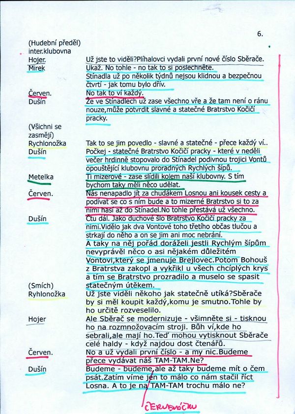 Ukázka ze scénáře i s poznámkami produkční Nadi Dvorské: