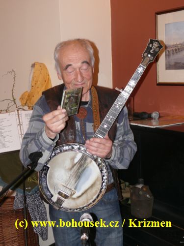 Rozsáhlé prostory Muzea Karlova mostu na Křižovnickém náměstí byly zaplněny téměř do posledního místečka, nadechnout se nebylo kde, venku totiž pršelo. Přítomným to však nevadilo, protože úvodní pásmo písniček skupiny Paběrky poslouchali s nelíčeným zájmem a častými ovacemi. Oslavenec - jak jinak - s banjem spolu se svými kolegy hrál více než půlhodinu. Následně si vzal slovo Slávek Janov, který zahájil více než hodinové pásmo děkování, křtů a zajímavostí - a také již jeho legendární převlekovou eskapádu (jednou jsme ho viděli coby manažera, podruhé v americkém, následně trampském obleku, aby závěr vernisáže ukončil v převleku za Mirka Dušína) a několik skromných slov pronesl také kurátor Milan Lebeda.