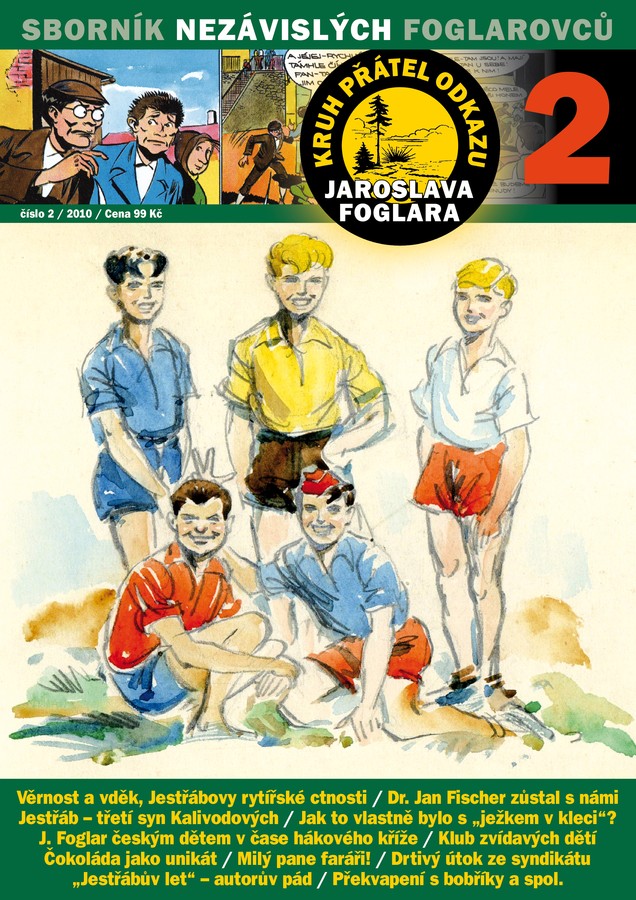 Vychází druhý Sborník nezávislých foglarovců[ Autor: Jiří Stegbauer - Jura | zařazeno: 9. 6. 2010 | přečteno 13527 ] Nakladatelství Ostrov připravilo ve spolupráci s Kruhem přátel odkazu Jaroslava Foglara v malém nákladu druhý Sborník nezávislých foglarovců, jehož premiéru uskuteční foglarovský badatel Luboš Trkovský na tradičním setkání ve Sluneční zátoce u Ledče nad Sázavou 19. 6. 2010. V jeho obsahu je řada nových, dosud neznámých nebo pozoruhodně doplněných objevů ze života a díla Jaroslava Foglara. Publikace mj. připomíná životní jubilea obou kreslířů Rychlých šípů, přičemž k připomínce dr. Jana Fischera je na obálce otištěna také nově objevená, dosud neznámá kresba Rychlých šípů z roku 1950! Z obsahu: Věrnost a vděk, Jestřábovy rytířské ctnosti Dr. Jan Fischer zůstal s námi Jestřáb - třetí syn manželů Kalivodových Jak to vlastně bylo s "ježkem v kleci"? Klub zvídavých dětí Čokoláda z Hlasatele jako unikát Milý pane faráři! Drtivý útok ze syndikátu Překvapení s bobříky a spol. Sborník má 32 stran formátu A4 tištěných tentokrát čtyřbarevně na silnějším křídovém papíru a jeho cena je 99 Kč.