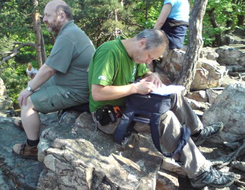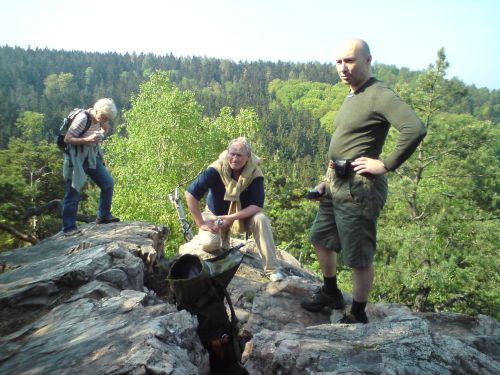 Na Brdy za první láskou Jaroslava Foglara[ Autor: Tomáš Hromádka - Krizmen | zařazeno: 2. 5. 2011 | přečteno 17329 ] Poslední dubnový den roku 2011 se členové Pražské pobočky Sdružení přátel Jaroslava Foglara, Akademie Jaroslava Foglara a jejich přátelé vydali na výpravu po stopách první lásky (skautské vůdkyně či rádkyně dívčího oddílu, se kterým se Dvojka na Brdech potkala) Jaroslava Foglara přesně po 85 letech. Členové známého skautského oddílu spolu se svým vůdcem výlet totiž tři dny na Brdech a v okolí prožili ve dnech 30. 4 – 3. 5. 1926. Současně si touto akcí foglarovci připomenuli první z kronikových „reserv“ = nikdy nenapsaných a nedopsaných zápisů v kronikách. Z této výpravy totiž s výjimkou kresbičky v záhlaví s „šifrou“ umístěnou v červeném srdíčku (!) neexistuje žádný zápis ani v oddílové kronice ani v Jestřábově deníku či jeho pozůstalosti. Většina z nás se sešla na Smíchovském nádraží, odkud jsme jeli do Dobřichovic, kde začínala jiná jarní brdská výprava Dvojky před 85 lety. Jelikož předpověď slibovala nejisté počasí, hned na začátku výpravy sledované stylově na mapě Marko Čermáka, jsme se seznámili s oddílovými nálepkami Hochů od Bobří řeky, které se prostřednictvím dávných dvojkařských výroků zaobírají oddílovými rčeními o počasí. Z Dobřichovic jsme vystoupali kolem vily Pellé na brdský hřeben k vyhlídce Hvíždinec (476 m.n.m.). Protože je odsud opravdu krásný výhled na okolní krajinu, a protože toto místo patřilo také k historicky oblíbeným dvojkařským místům, velká část doprovodného programu se odehrála právě zde. Především zde doslova a do písmene řádila Zelená příšera. Kdo na výpravě byl, ví, o čem mluvím. S neotřelým nápadem přišel Slávek, který nás nechal hádat, jakou zelenou barvou potřísnila příšera rákosí v Hoších od Bobří řeky. Navíc jsme následně všechny zelené tekutiny mohli ochutnat, což si všichni nenechali ujít. Na místě měla premiéru další taškařice – hymna Akademie Jaroslava Foglara (společně zpívaný refrén písně Z Bobří hráze od Jana Vyčítala). Rovněž byl přípraven test s třinácti otázkami, které se týkaly Brd, foglarovek, trampingu a vzhledem k tématu výpravy dvě otázky byly i na erotické téma. Účastníci výpravy v testu spíše propadli - slovy Slávka test dopadl p-ř-í-š-e-r-n-ě (vítěz vyhrál se sedmi body z celkových dvanácti možných). Pak následovalo badatelské rokování na téma okolností dávné výpravy. Alpín účastníky seznámil s dosud méně známými fakty (budou uvedena v samostatném článku) a rozproudila se živá diskuse nad záhadnou malůvkou v oddílové kronice s nic neříkajícím matematickým příkladem „2+6=8“. Do debaty se nečekaně zapojili i příchozí náhodní turisté, kteří se rovněž přišli na Hvíždinec podívat. Došlo také na čtení z Knihy o Dvojce, z oddílových kronik, vzpomínku na permutráček, a také na možné okolnosti pojmenování města Spálené Mlýny z Chaty v Jezerní kotlině. Před odchodem se ještě na svůj kraj poprvé podívalo nové vydání kultovní knihy všech milovníků Brd – Toulání po Brdech od největšího znalce a popularizátora tohoto území Jana Čáky – Bažanta. Celý program, který trval téměř tři hodiny, nevěřícně sledovala upletená Bublina, kterou jsme mohli prvně vidět na výstavě S Rychlými šípy nejen do Stínadel v roce 2005. Čas se však nachýlil, a tak, abychom mohli jít dál ve stopách Jaroslava Foglara, rychle jsme se sbalili a vyrazili směrem k baroknímu areálu na Skalce nad Mníškem pod Brdy. Cestou jsme potkávali desítky závodníků, kteří se účastnili cyklistického závodu Trans Brdy. Na Skalce se o slovo přihlásilo počasí, před bouřkou jsme se schovali v kostele sv. Máří Magdaleny a zdejším klášteře. Na zpáteční vlak Praha – Dobříš – Paříž do Mníšku pod Brdy jsme již docela spěchali. Zde skončila naše pouť, která se konala také na počest všech dávných, současných i budoucích lásek děvčat a kluků – vedoucích dětských oddílů nejrůznějších dob, věků i organizací. Nemohli jsme přesně stanovit či kopírovat trasu z dnů před osmdesáti pěti lety, neboť – jak již bylo uvedeno právě tento zápis – jako první vůbec – v kronice od Jestřába schází. Co jsme však cestou vlakem na rozloučenou viděli, bylo „Království“ Dvojky.