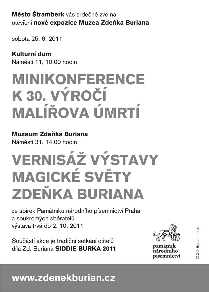 Město Štramberk vás srdečně zve na otevření nové expozice Muzea Zdeňka Buriana v sobotu 25. 6. 2011.