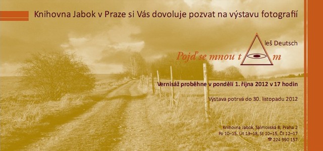 V pražské knihovně Jabok bude v pondělí 1. října 2012 v 17 hodin zahájena výstava fotografií člena Sdružení přátel Jaroslava Foglara Aleše Deutsche nazvaná Pojď se mnou tam.