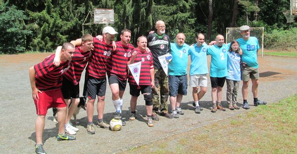 Fotbalový duel Rapid vs. Čechie ve Sluneční zátoce - 2:1[ Autor: Radim Kejík - Rolf | zařazeno: 23. 6. 2015 | přečteno 11199 ] Ač se v kuloárech spekulovalo, zda předseda SPJF Alpín provede čestný výkop či ne, dopadlo vše nakonec úplně jinak. Matador z Cibulek tajně od zimy trénoval s Klokany ve Vršovicích a v samotném zápase se představil v dresu číslo 7. Zkušeně si počínal při obranné činnosti a číhal na každý okamžik, kdy mohl odkopnout míč směrem k brance, ve které se tyčil dvoumetrový MV Bobr, publikem přezdívaný "Černý pavouk", což byla přezdívka nejlepšího brankáře světa 60. let Lva Jašina! Na druhé straně se však v neméně dobrém světle předvedl pražský gólman "Divočák", který s bekovkou na hlavě a tygřími skoky po míči připomínal Františka Pláničku. Do střelecké listiny se zapsal hned v úvodu střetnutí Sharp, který technickou střelou vymetl pavučiny v horním rohu branky Čechie! Rapid se i po tomto gólu nadále tlačil před branku, ale "Squadra azura" se výtečně bránila. A co víc, Menhart po jednom z rohových kopů byl velmi blízko vyrovnání. V druhé půli taktovku převzal tým v modrých barvách, a kdyby neměl Bobr natřené rukavice lepidlem z Malty, tak by jistě lovil míč ze sítě. Ovšem platilo staré známé "nedáš-dostaneš". Po Sharpově obloučku se do střelecké pozice dostal Rolf a z voleje propálil vše, co mu stálo v cestě! A mohlo být pro Čechii ještě hůře, když Soki hlavičkou orazítkoval pravou tyč Divočákovy branky.... S blížícím se konečným hvizdem rozhodčího Vládi Camra jako by se Rapid nechal ukolébat a byla z toho změna skóre. Robin se protáhl obranou soupeře a přesnou střelou dal svému družstvu naději. Na vyrovnání však již bylo málo času a tak se z vítězství 2:1 nakonec radoval Rapid! Diváci si mohli před zápasem zakoupit Sázenku za pouhých Kč 10,- a vsadit si na vítěze. V sobotu se prosázelo neuvěřitelných Kč 1644,- a 3 centy. Všechny peníze vybrané na sázkách věnuje pořadatel fotbalového zápasu - SPJF na boj proti rakovině prostaty, jak bylo uvedeno i na Sázenkách. Sestavy: Rapid - Bobr, Dingo, Vánočka, Rolf, Soki, Sharp x Čechie – Martin Rosol, Menhart, Alpín, Winoga, Žabka, Robin, Jan Machálek Střelci branek: 4. minuta Sharp - 1:0, 16. minuta Rolf - 2:0, 19. minuta Robin 2:1 Další informace o zápase na http://www.iklubovna.cz/clanky/vinohradske-derby-vyhral-tesne-rapid-nad-cechii-2788