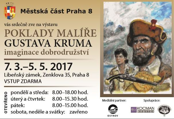 Městská část Praha 8 pořádá od 7. března v Libeňském zámku výstavu Poklady malíře Gustava Kruma, imaginace dobrodružství. Výstava potrvá do 5. května 2017.