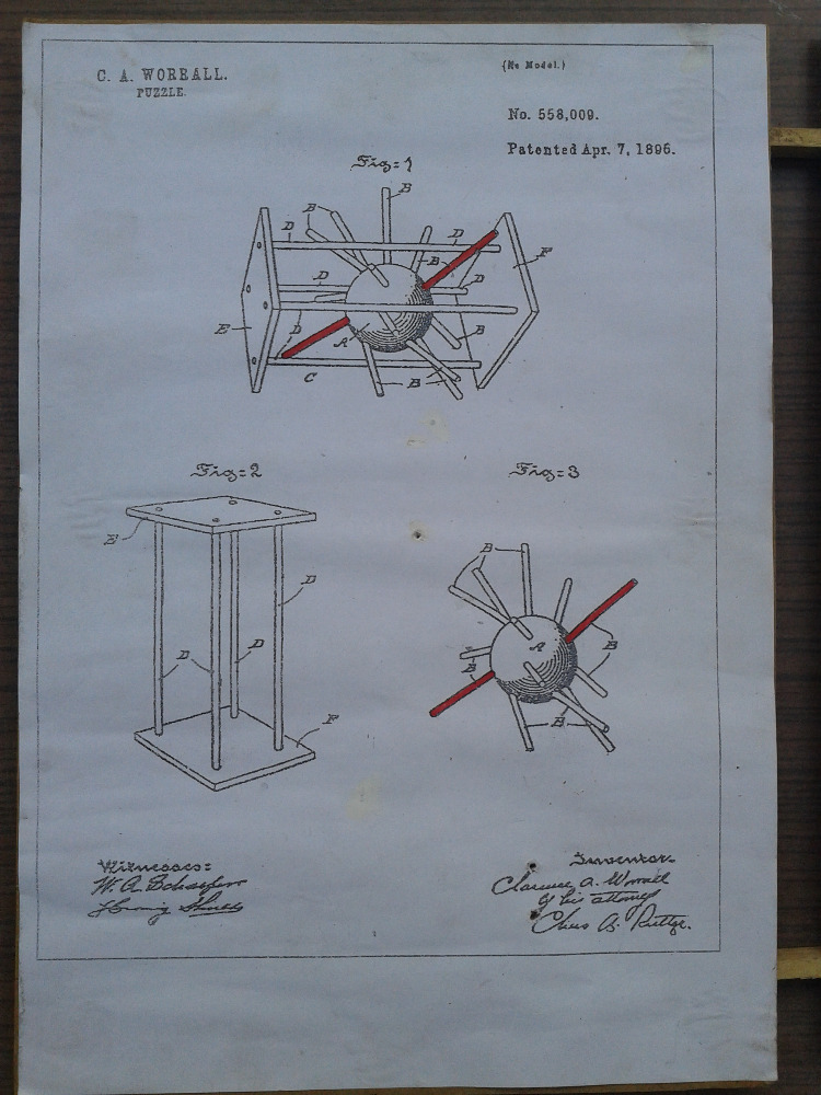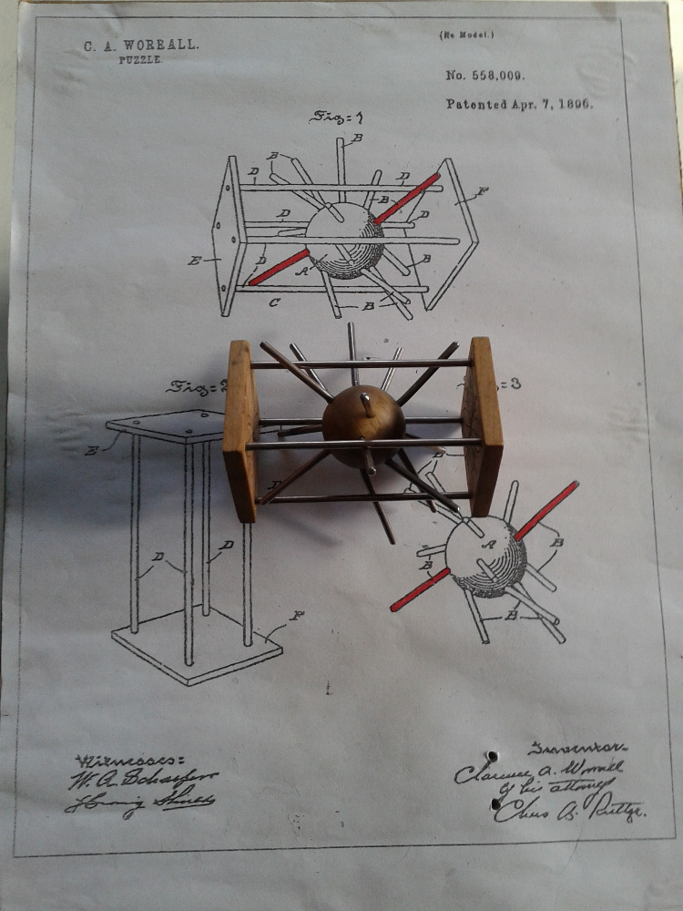 Byla to dlouhá hodně těžká, svízelná i objevitelská práce, vyráběl jsem "WORRALLA" přes dva měsíce a pokazil devět kusů, ale výsledek stál za to a pocit potom při vyjímání byl úžasný, přestože jsem musel postupovat obráceně - vyrobeného ježka nejdříve do té klece dostat, a až při devátém pokusu jsem teprve přišel na skrytý fígl, kterým si pravděpodobně pan C. A. WORRALL pojistil svůj patentový obrázek proti zneužití. Moc mě to bavilo, i když byly i chvíle, kdy jsem byl i zoufalý a připadal jsem si jako Jan Tleskač, když vyráběl a zkoušel své létací kolo. A teď když ten způsob vyjímání i zandavání znám - obsahuje deset těžkých, nečekaných ale "jednoduchých" tahů - nemůžu se vyjímání "prvního" ježka v kleci z Ameriky nabažit a užívám si to, ta složitá, ale krásná práce stála za to! Takže pane C. A. WORRALLE z USA, díky za patent a k 120. resp. už k 121. narozeninám vašeho "prvního" ježka v kleci přejeme vše nejlepší.