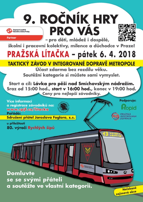 Pražská lítačka 2018 – IX. ročník závodu v používání pražské integrované dopravy v pátek 6. dubna[ Autor: Marek Skýpala - Winoga | zařazeno: 26. 3. 2018 | přečteno 10238 ] Závod v používání pražské integrované dopravy Pražská lítačka se uskuteční v pátek 6. dubna 2018 již IX. ročníkem. Cílem závodu pořádaného Pražskou pobočkou Sdružení přátel Jaroslava Foglara je zisk maximálního počtu bodů za projeté linky, zastávky a speciální bonusové zastávky převážně na území města Prahy a v jeho blízkém okolí. Každý závodník si sám volí svoji trasu a sbírá body podle její výhodnosti. Pro nejlepšího závodníka je nachystána cena. Soutěží se v absolutní kategorii, ale i v různých kategoriích, které si soutěžící sami vymyslí. Jedná se o tříhodinový závod. Start bude v 16 hodin z lávky mezi Smíchovským nádražím a tramvajovou zastávkou Křížová, nad železniční zastávkou Praha - Smíchov severní nástupiště. Na stránkách http://litacka.spjf.cz/ naleznete všechny potřebné údaje k úplnému pochopení pravidel a pokyny k registraci. V pátek 6. dubna 2018 se v Praze uskuteční již 9. ročník Pražské lítačky - soutěže v používání městské hromadné dopravy. S nápadem uskutečnit podobnou akci přišla již před několika lety skupinka okolo Jihomoravské pobočky Sdružení přátel Jaroslava Foglara. V Brně se oblíbená soutěž koná již tradičně pod názvem Šalinění. Jak Pražská lítačka, tak i Šalinění se ve svém názvu pokoušejí vystihovat regionální specifika hromadné dopravy. K předpokládatelnému dotazu na název soutěže sdělujeme, že Lítačka je skutečně termín původem mimopražský, který se do ní dostal s tzv. náplavami. Sdružení přátel Jaroslava Foglara jej použilo již v prvním ročníku, který se uskutečnil v roce 2010. Název Lítačka má evokovat jednak rychlost, s níž se závodníci pohybují po Praze, ale zároveň je použit jeden ze specifických termínů, který se používá v prostředí hromadné dopravy. Jelikož je slovo Lítačka výsledkem lidové tvořivosti, ani my si na něj nečiníme žádný nárok. Soutěž v používání městské hromadné dopravy je na první pohled asi pro většinu hodně tajuplné vysvětlení. Jistější proto bude, když ozřejmíme, že vítězem bude účastník, který za tři hodiny dokáže cestovat v co největším počtu dopravních prostředků, přestoupit, nastoupit či vystoupit na co největším počtu zastávek a případně navštívit i lépe hodnocené, bonusové zastávky. Svou cestu dokumentuje bločkem papírů, jejichž tvar odpovídá rozměrům pražské jízdenky. Při každém nástupu jeden papír otiskne v označovači. Pak se již musí jen včas vrátit na start a předat organizátorům bloček, který o jeho pouti džunglí městské dopravy bude vypovídat jasnou řečí. K soutěži mohou nastoupit jen předem přihlášení závodníci (děje se tak kvůli zajištění průvodních materiálů ke hře). Start se uskuteční v 16 hodin ze střední části lávky, která spojuje Smíchovské nádraží se zastávkou Křížová, přibližně nad železniční zastávkou Praha – Smíchov severní nástupiště. Již od 15. hodiny bude prováděna prezentace a vysvětlování pravidel. Konec je pak logicky v 19 hodin na stejném místě. Pro nejlepší závodníky jsou připraveny ceny. Akce je pořádána Pražskou pobočkou Sdružení přátel Jaroslava Foglara, s podporou Městské části Praha 5, Ropidu a Dopravního podniku hlavního města Prahy. V letošním roce je Pražská lítačka rovněž zapojena do oslav 80. výročí Rychlých šípů. Spolupracujeme i s kolektivy okolo serverů http://www.omh86.cz/ a http://www.prazsketramvaje.cz/, které se přímo zaměřují na pražskou hromadnou dopravu. Velmi si vážíme veškeré podpory a spolupráce. Jménem organizátorů vás všechny zve Winoga a Menhart