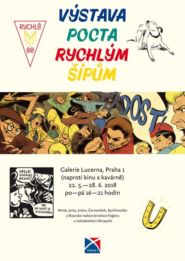 Výstava Pocta Rychlým šípům se bude těšit na vaši návštěvu v Galerii Lucerna (palác Lucerna, naproti kinu a kavárně) od 22. května do 28. června 2018. Otevřeno bude od pondělí do pátku vždy od 16 do 21 hodin a vstup je zdarma.