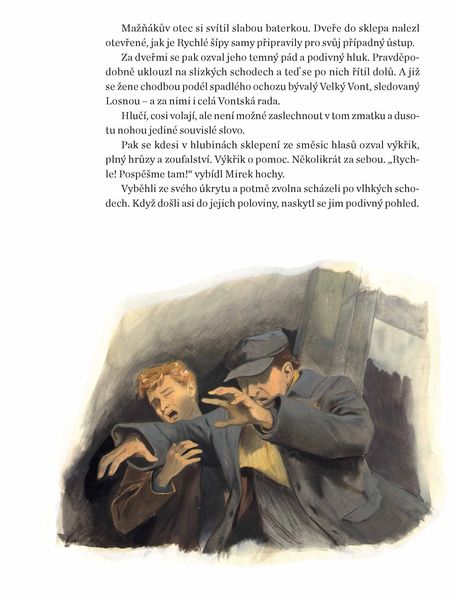 Tentokrát s ilustracemi Jiřího Gruse; ten bude ilustrovat i Stínadla se bouří a Tajemství Velkého Vonta. Další ukázky ilustrací i ucelený náhled na prvních třináct stran románu přinášíme v závěru článku.