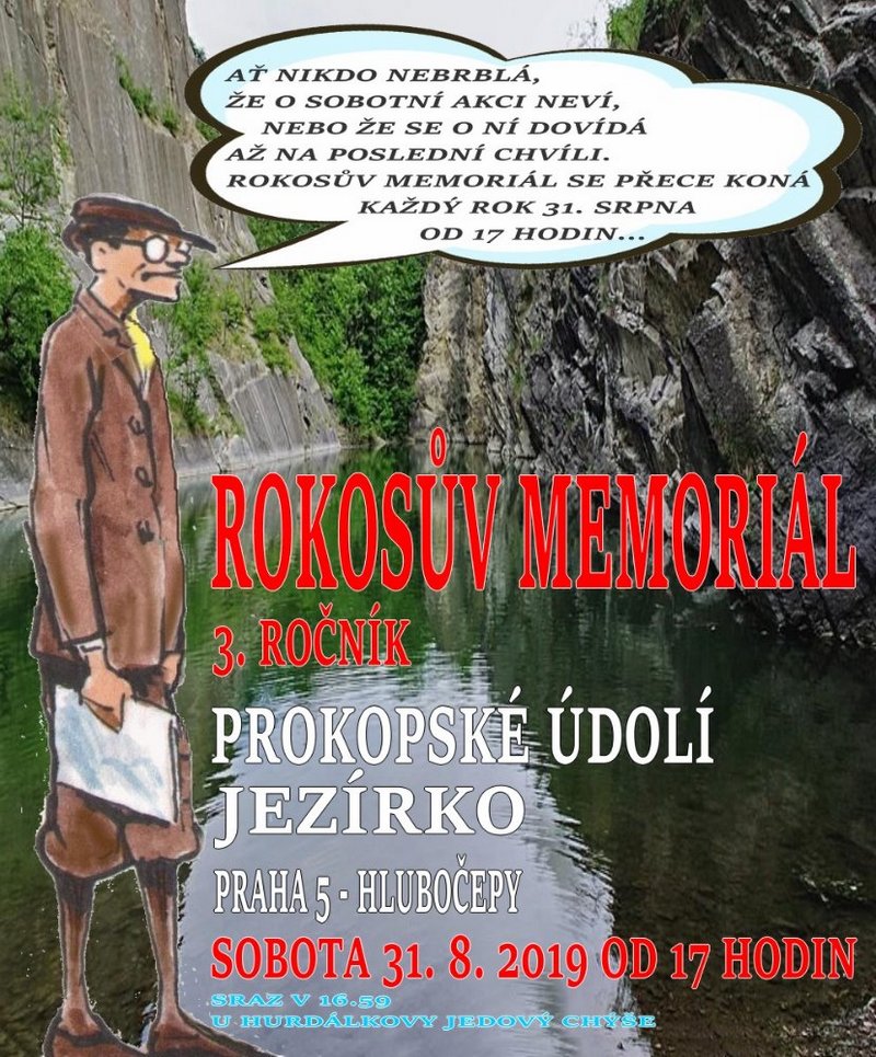 Rokosův memoriál se letos koná už potřetí - a od roku 2017 je pravidelně proklamováno, že datum, čas i místo jsou neměnné, tedy 31. srpna od 17 hodin v Jezírku v Prokopském údolí.