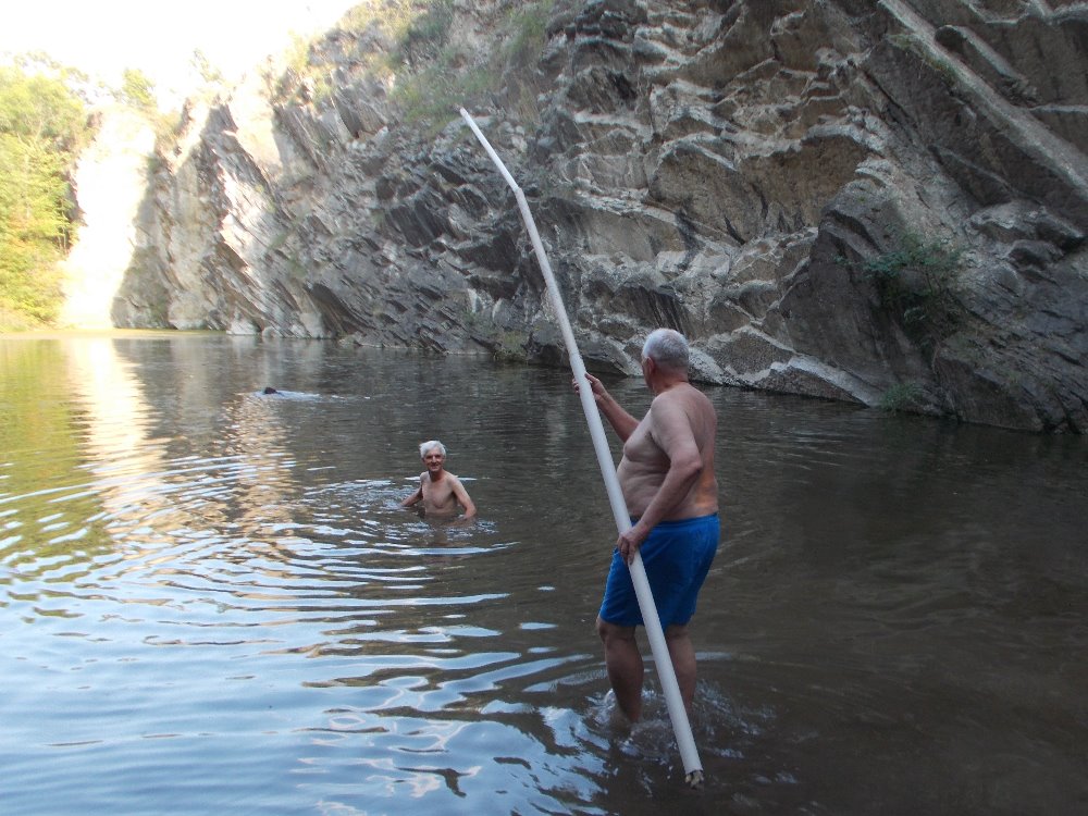 Sérií legračních fotografií jsme si připomněli nedávno proběhnuvší třetí ročník Rokosova memoriálu, kterého bylo tentokráte účastno i samo dlouhé bidlo, s jehož pomocí se odvážní plavci pokoušeli dosáhnout dna a zaměřit hloubku Prokopského jezírka.