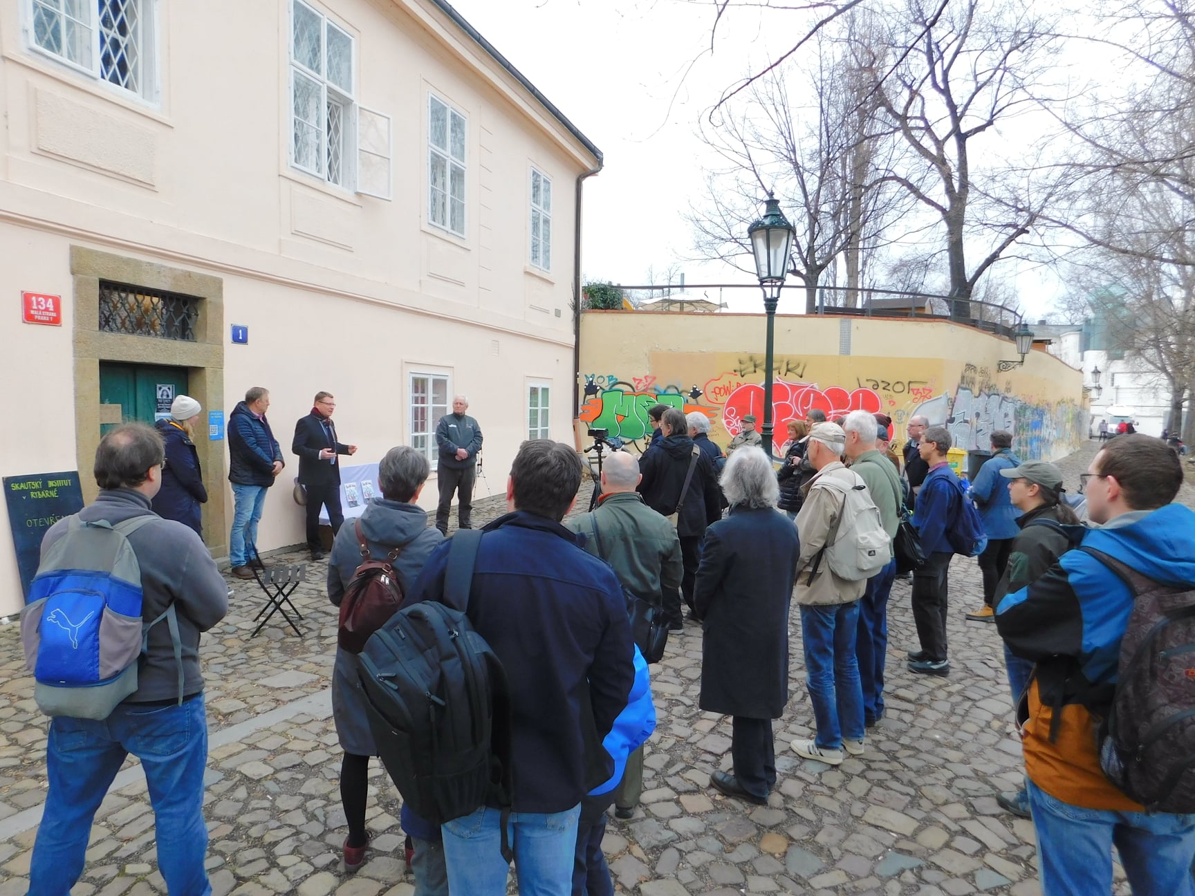 Odhalení lavičky Záhady hlavolamu 2022Setkání k odhalení lavičky proběhlo v prostoru za „Rybárnou“ - někdejším Michnovským letohrádkem - u malostranského nábřeží Vltavy. Ideální místo pro lavičku se našlo hned u zadního průčelí letohrádku, s nádherným výhledem na panorama Starého Města od Karlova mostu až k Národnímu divadlu.