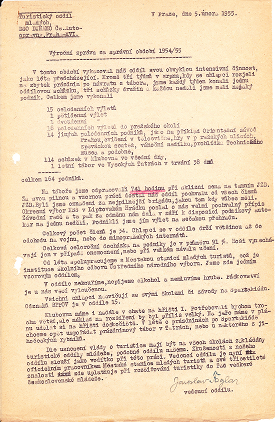 Výroční zpráva za správní období 1954/55 – Turistický oddíl mladých, DSO DYNAMO Čs. Autoopravny, Praha-XVI.
