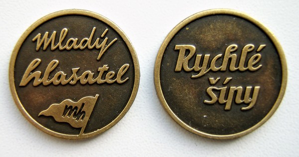 Původní výtvarný návrh rubové strany bohužel nemohl být pro technické obtíže realizován, ale mně se od samotného autora podařilo získat do sbírky velikou sádrovou plaketu o průměru 26cm s tímto původně zamýšleným motivem. Jsem velice rád, že vlastním takovou trvalou památku na tohoto vzácného člověka. (obr. 3) Po uplynutí pěti let vyšla další pamětní medaile, tentokrát u příležitosti Jestřábových devadesátin. Také ona byla ve trojím provedení barvy kovu. (obr. 4) Rád bych se ovšem zmínil o jisté kuriozitě, se kterou jsem se setkal: ![]() Podařilo se mi totiž objevit medaili, která má na aversu reliéf k Jestřábovým devadesátinám, na reversu ale nápis k jeho pětaosmdesátinám! Představuje tak kombinaci obou výše popsaných medailí! Jak tato anomálie mohla vzniknout, mi ovšem není známo. (obr. 5a, 5b) Některé další kovové medaile s foglarovskými motivy lze běžně objednat v internetových obchodech – nabízí se velké medaile s potiskem ježka v kleci o průměru 7cm (obr. 6) , případně menší – čtyřcentimetrové s vytištěným ježkem a deníkem Jana Tleskače. (obr. 7) Vše samozřejmě v provedení zlato, stříbro, bronz. Někoho možná překvapí, že existují i medaile ze dřeva! Jde o kompletní sadu 13. medailí určených pro děti s vypalovanými bobříky. (obr. 8) ![]() ![]() Za velice zajímavé považuji plakety obsahující atributy z příběhů Rychlých šípů. Jde o soukromě vyrobené předměty ze dřeva a různobarevných kovů s vlaječkami Rychlých šípů a s nápisy vážícími se k jejich příběhům a dokonce i s vloženými miniaturními ježky v klecích! Nejstarší z trojice těchto plaket, které vlastním, je údajně z roku 1939, další dvě nesou vyražený letopočet 1941. O jejich původu mi prodejce prozradil jenom tolik, že jde o pozůstalost po starém pánovi, který už nežije. Skutečné stáří těchto pozoruhodných výrobků tedy nelze nikterak ověřit, naopak je možné o něm dokonce pochybovat. (obr. 9 - 11) Zvláštností je též plaketa vyřezávaná laserovou technologií ze silného nerezového ocelového plechu ve tvaru ježka v kleci, kterou nechal v několika exemplářích zhotovit foglarovec a sběratel Patrik Havel z Ledče nad Sázavou. (obr. 13) Barevně sbírku oživují také reklamní plakety od známého výrobce hlavolamů Radka Micopulose. (obr. 14) Velmi kvalitní provedení má drobná medailka (mince) vydaná v roce 2021 Skautskou nadací Jaroslava Foglara. Na líci nese nápis a logo Mladý hlasatel a na rubu nápis Rychlé šípy. (obr. 15) K nejnovějším medailovým přírůstkům patří pamětní mince vydaná Spolkem Pražská Dvojka – Hoši od Bobří řeky. Výtěžek z prodeje bude použit k financování reprintů historických dvojkařských oddílových kronik. (obr. 16) A úplně poslední medailovou novinkou jsou limitované třicetikusové edice dvou kovových plaket od kbelských skautů S.S.V. k 85. výročí Rychlých šípů. (obr. 17) (Zpracováno pro zpravodaj Klubu skautských sběratelů Junáka – ZIPSS 3/2021; aktualizováno pro Bohouška v prosinci 2023) |